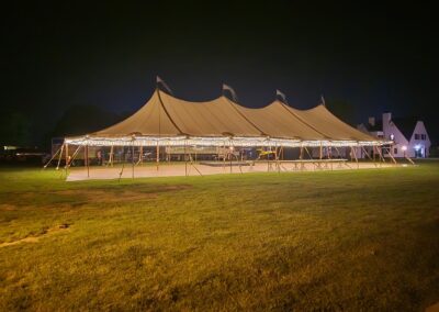 The “glow” is the signature feature of a sailcloth tent. Because the fabric is translucent, interior string lighting or LED uplights reflect off the ceiling and are visible from the outside. This transforms the entire tent into a soft, glowing lantern on your event site, providing a stunning backdrop for nighttime photography.